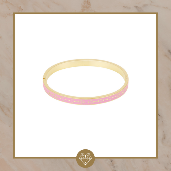 Deze gave slavenarmband bevat een mooie print. De armband is verkrijgbaar in het goud en is gemaakt van stainless steel.